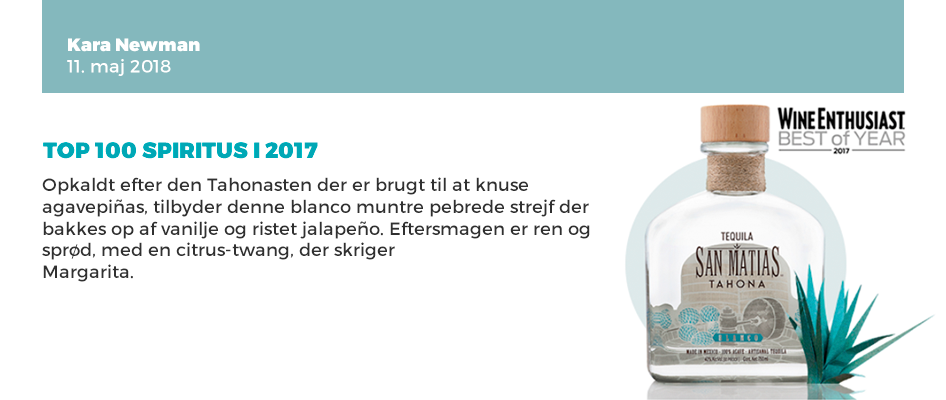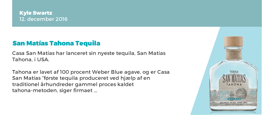 Kulminationen af hvad vi er, en 130 års arv i tequila-fremstillingsindustrien, er repræsenteret i vores nyeste udgivelse. Med hver slurk af San Matías Tahona, håber vi, du vil smage traditionen af vores mere end et århundrede-lange engagement i at producere Mexicos fineste tequilas til at dele med venner, familie og kunder.