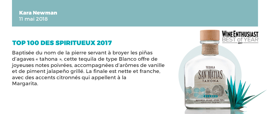 Notre méthode, notre tradition et les saveurs que nous offrons nous ont permis de remporter de nombreuses récompenses qui nous remplissent de joie et de fierté. Pour cette raison, nous sommes heureux de partager avec vous les prix que nos tequilas San Matías Tahona et San Matías Tahona Reposado ont reçus.