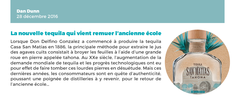 Pour les amants de tequila que cherchent des nouveautés mais encore macérés dans la tradition, Casa San Matías est honorée de dévoiler l’expression argentée de San Matías Tahona. C’est notre première tequila produite entièrement à partir du procès centenaire de tahona – une méthode que peu producteurs de tequila utilisent à cause de son intensité de travail e coûteux naturel.
